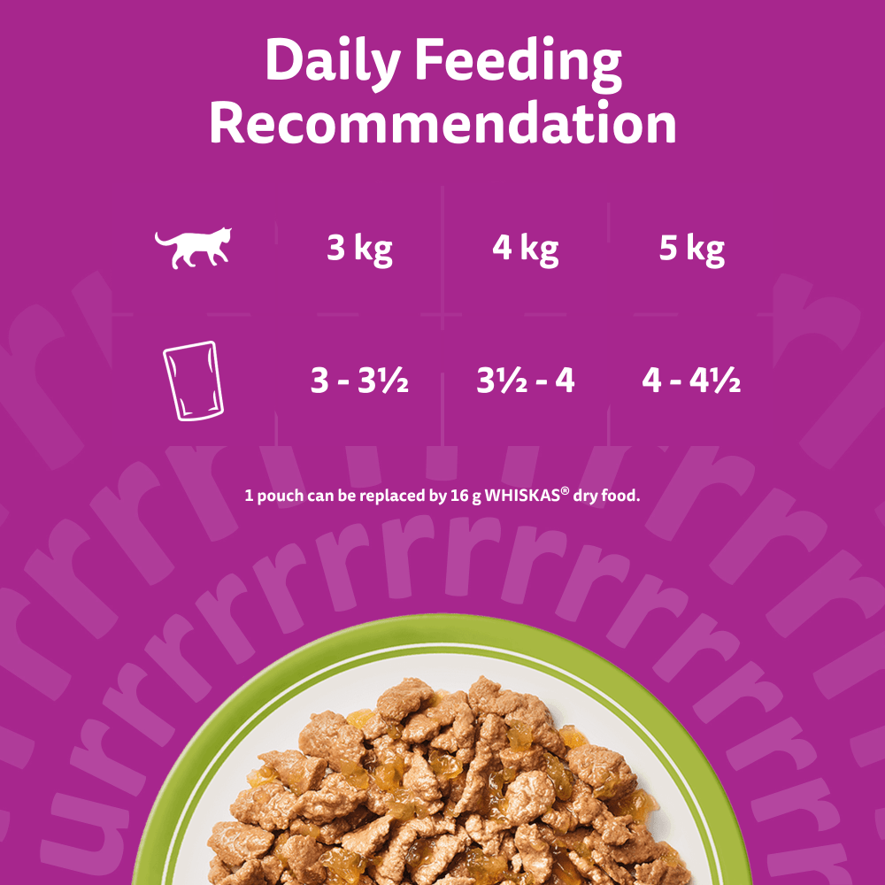 Specially prepared to preserve the natural goodness and deliciousness of high quality ingredients, our favourite meals will see your cat rush to the bowl faster than ever before! Our tasty recipes are designed for contented purrs at every age….at mealtimes and beyond.100% high quality ingredients and specially formulated to provide all of your 1+ cat's daily needs.Mouth-watering flavours & textures for maximum purrs.Healthy digestion and immune support90% of the protein comes from animal sourcesNo added artificial colours and preservatives.Ingredients